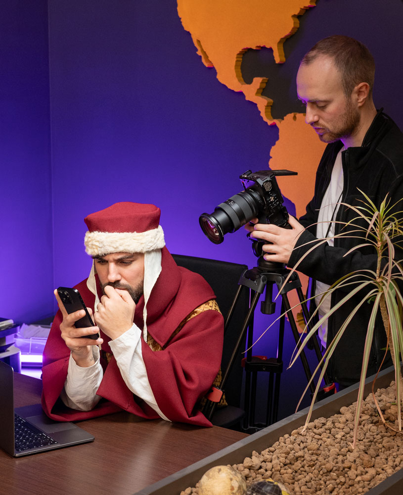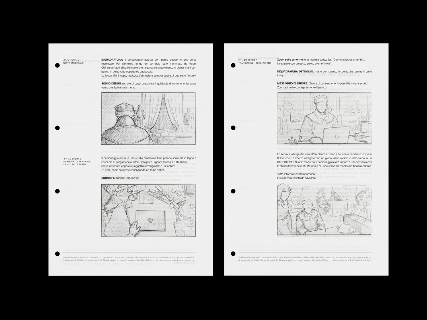 Attraverso un lavoro di sceneggiatura e scriptwriting condiviso tra produzione e regia, abbiamo definito il concept e lo script dello spot. Nella nostra visione, il Medioevo diventa un dispositivo narrativo, il contrasto un linguaggio, la frustrazione un insight.