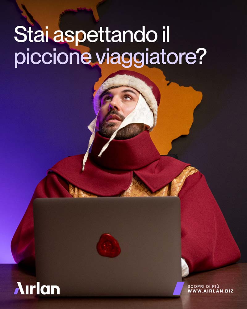 Un’estensione del concept con una narrazione seriale fondamentale per ampliare la reach della campagna, mantenere attiva la conversazione e sostenere l’identità visiva del brand nel tempo. Il Medioevo così diventa un universo narrativo in cui Airlan può inserirsi con leggerezza e continuità.