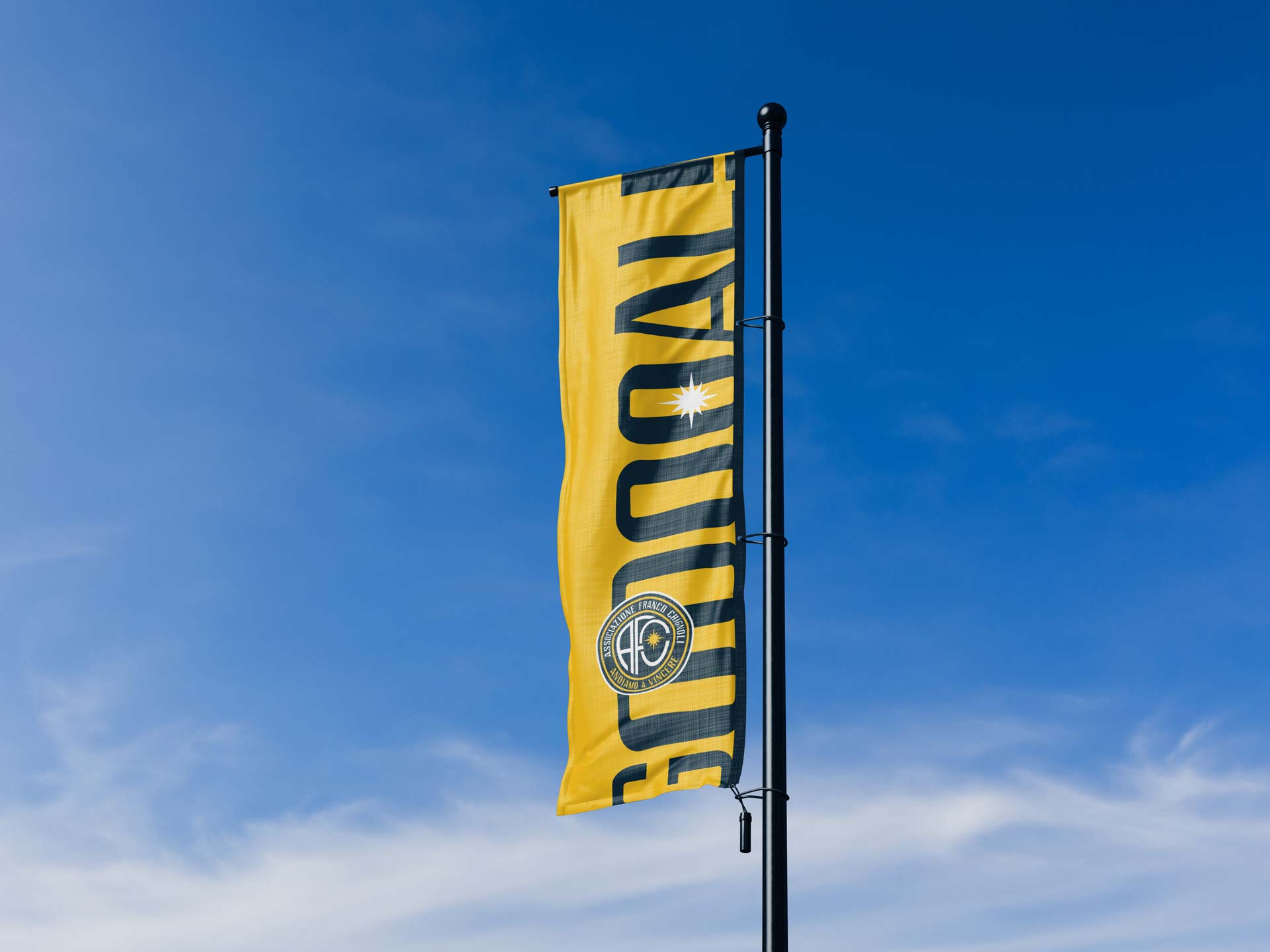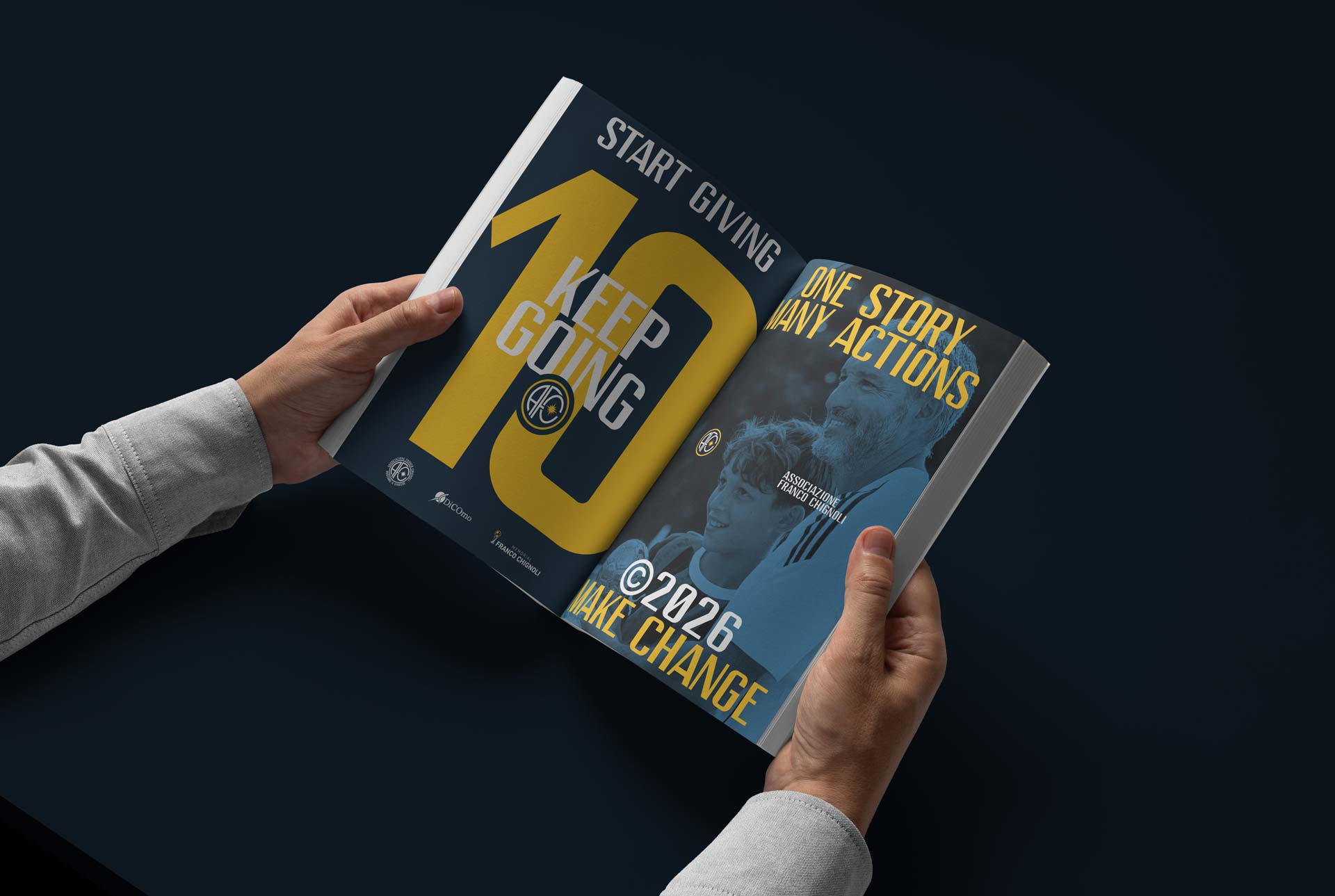 Il segno nasce quindi come sintesi di slancio, appartenenza e responsabilità sociale, con l’obiettivo di dare all’associazione una base identitaria coerente con il livello del progetto complessivo.
