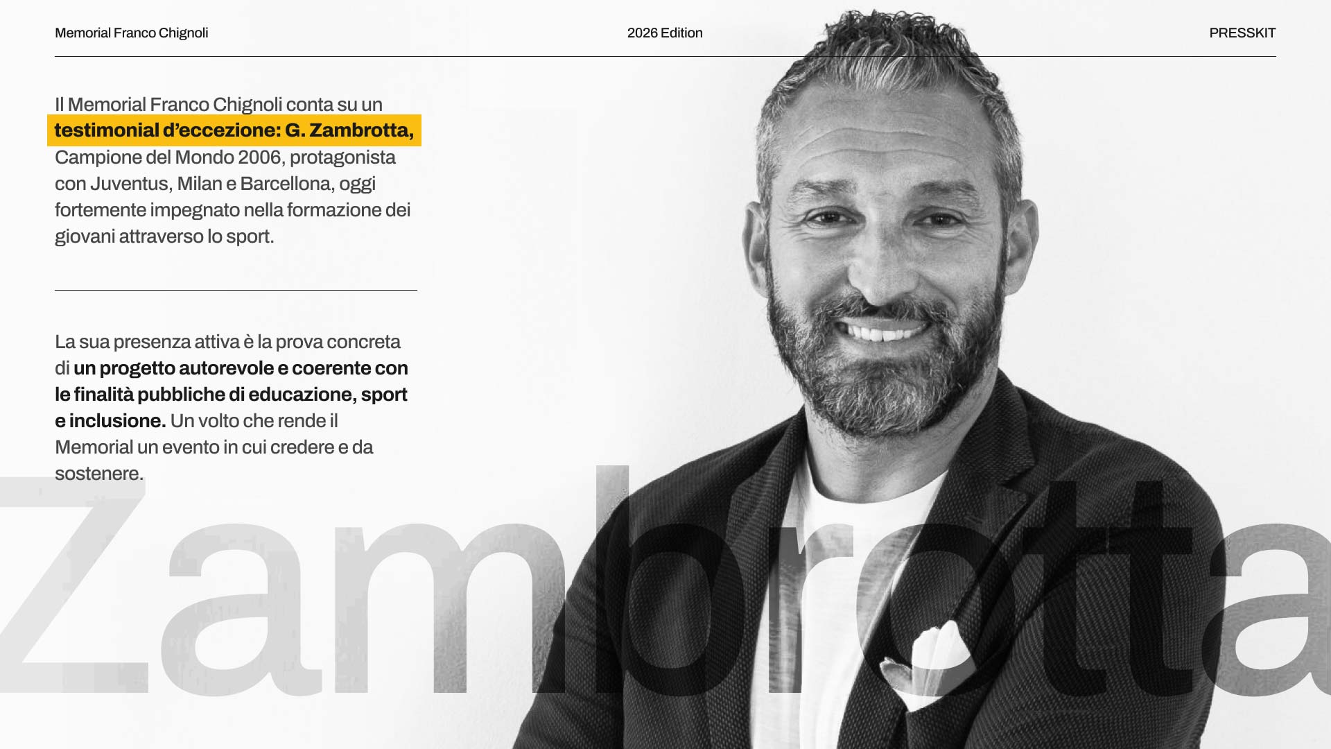 Con questo obiettivo abbiamo prodotto pitch deck destinati a club, partner e istituzioni, trasformando la comunicazione del Memorial in un asset strategico al servizio della sua crescita.