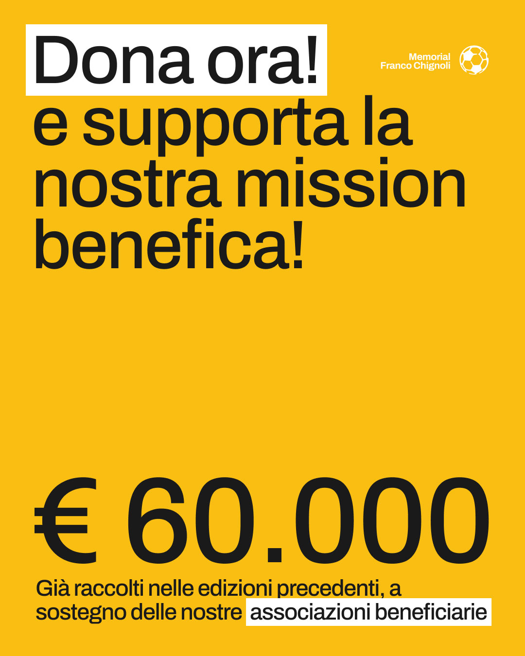 Il Memorial Franco Chignoli è un torneo internazionale di calcio giovanile a scopo benefico. Il nostro ruolo è trasformare il torneo in una media property ad alto impatto.